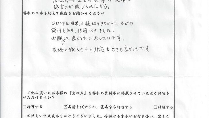 外壁塗装をご依頼いただいた福岡市東区F様の声