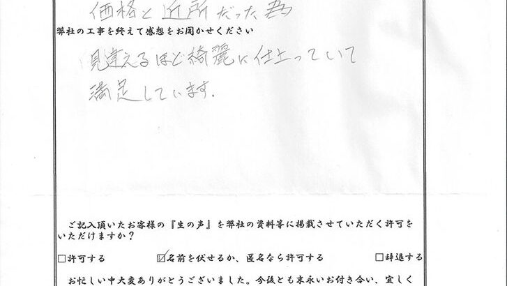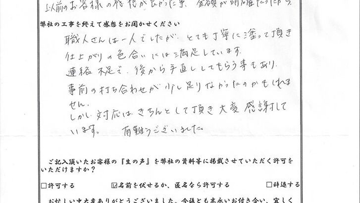 外壁塗装をご依頼いただいた福岡市東区Y様の声