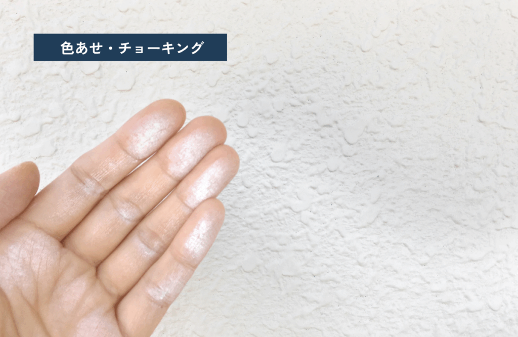 紫外線や雨風に長期間さらされることで、塗料に含まれる顔料が分解され、粉状になって表面に現れる現象です。外壁を手で触ると白い粉が付着するのが特徴です。これは、塗膜が本来持っている「外壁材を保護する」という防水性や耐久性の機能が低下し始めていることを示す、初期のサインとなります。