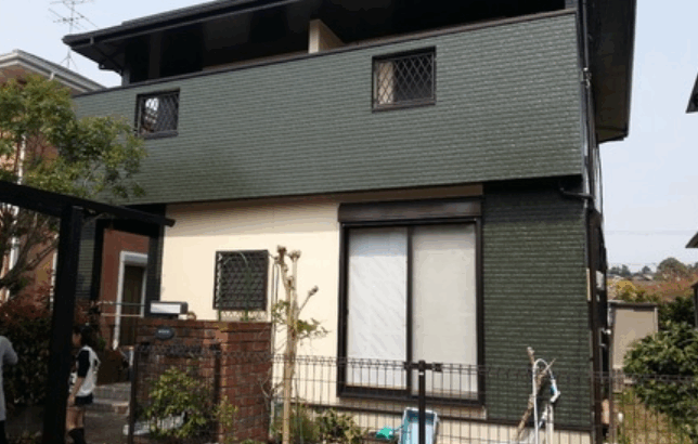 割れた屋根を補修し、鮮やかなボローニャグリーンで蘇った屋根塗装