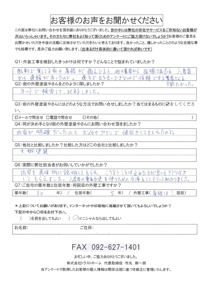 この度は、屋根塗装工事に当社をお選びいただき誠にありがとうございます。