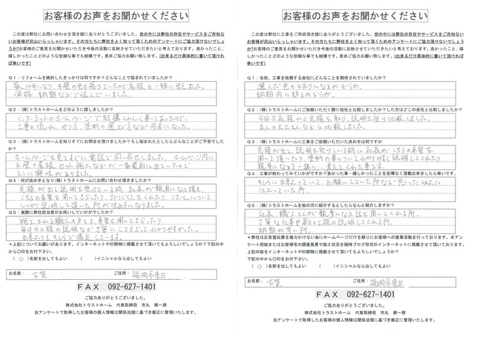 弊社の工事を終えて感想をお聞かせください。