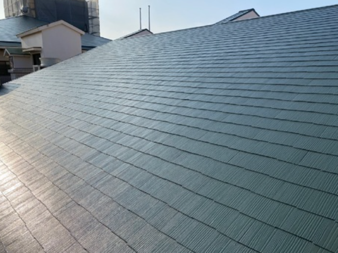 今回葺き替え工事だけでは防水の機能を持ち合わせていなかったので同時に屋根塗装も施工しました。