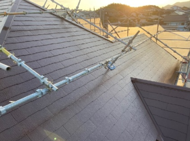 お客様のご理解いただき、屋根足場を組み安全に施工、丁寧な仕事でとてもキレイな屋根に仕上がりました。