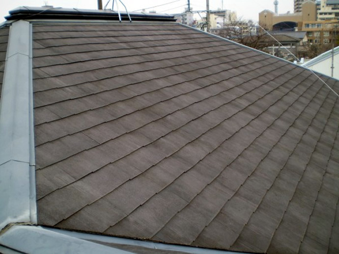 福岡市南区U様邸の施工前の屋根は、全体的に色あせが進んでおり、