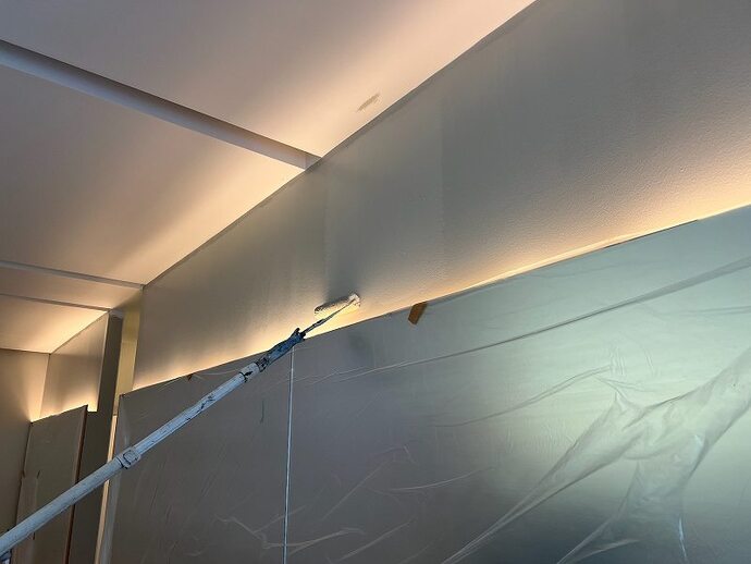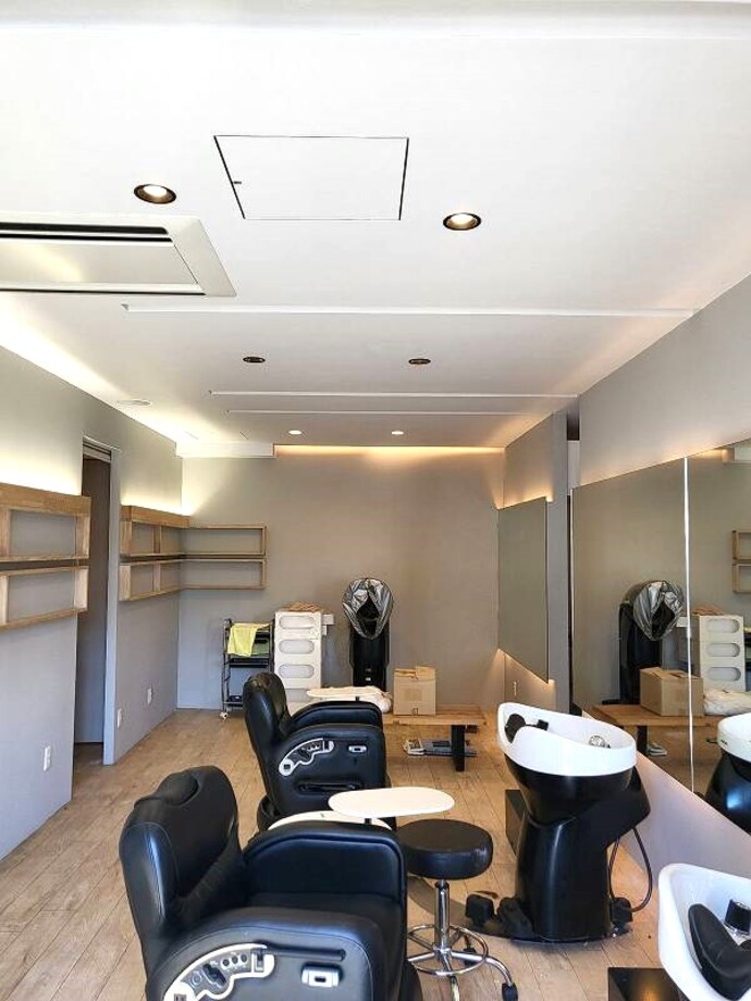 今回ご紹介させて頂きますのは、福岡県福岡市東区の美容院テナント内装塗装です。天井・壁を塗装することによりとても素敵な空間となりました。