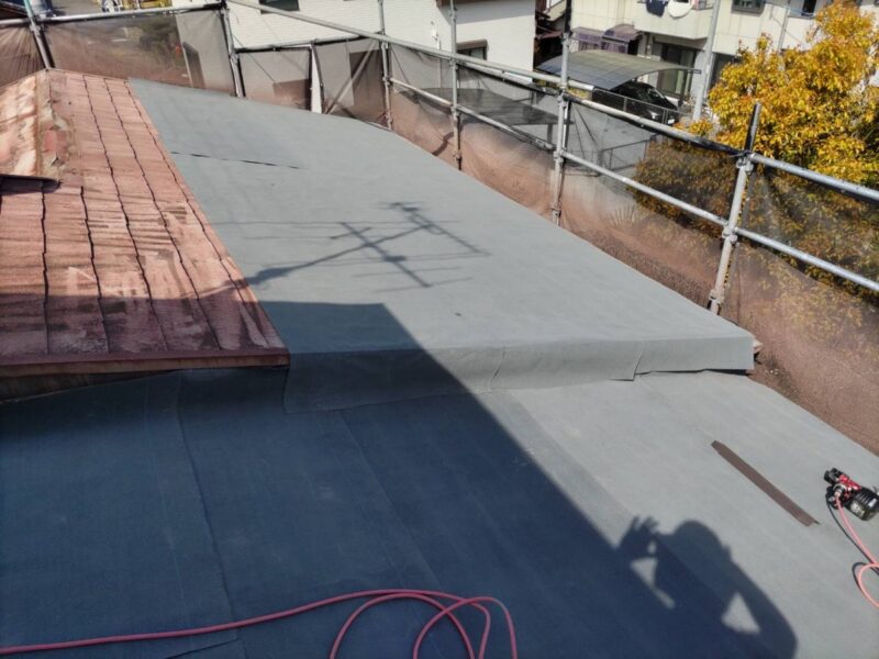 既存屋根の上から新しい屋根材を重ねる「屋根カバー工法」 を採用。