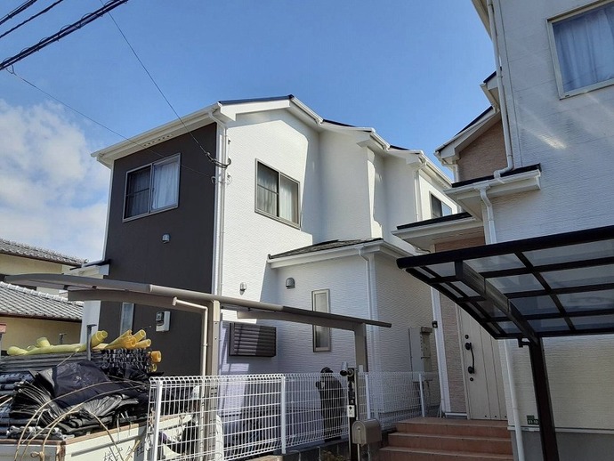 ■ 施工後|アイアンバーグ×クールホワイトで上品なツートン外壁へ