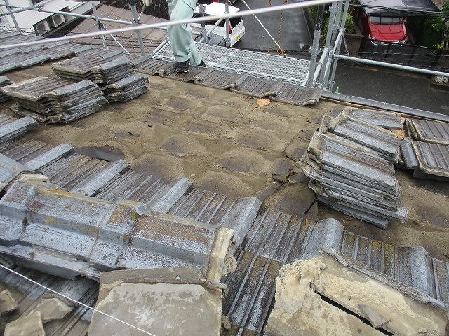 瓦の一部が大きく欠け、下地まで露出している危険な状態でした。