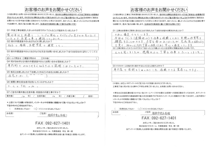 O様、この度はトラストホームに塗装のご用命をいただき誠にありがとうございます。