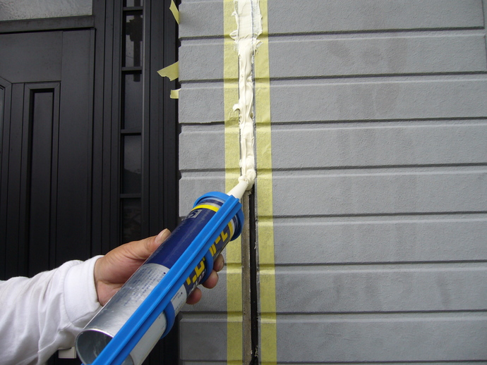 福岡市城南区サイディング外壁継ぎ目のひび割れ補修後に塗装施工
