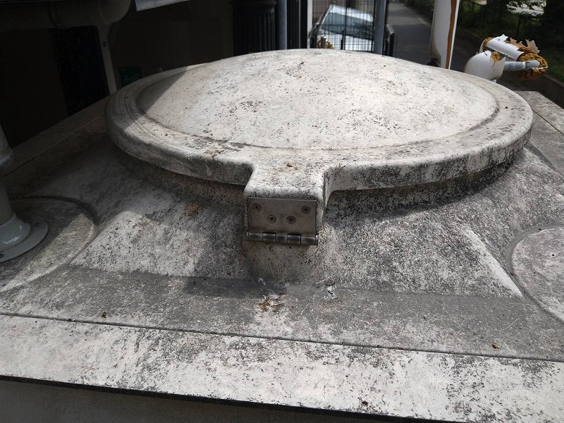 屋外に設置されている貯水槽は、長年の雨風や排気ガスの影響により、