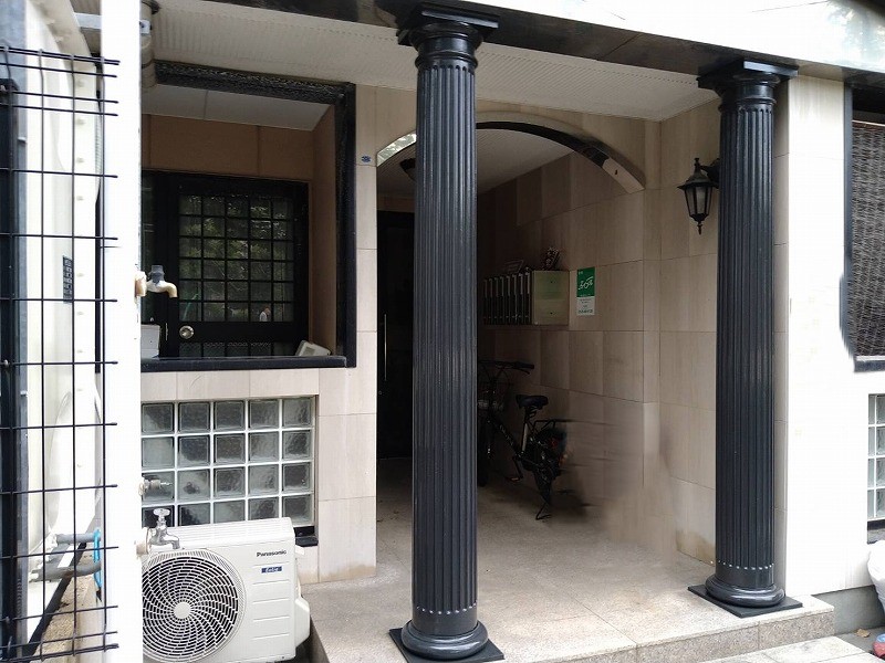 門まわり・支柱部分は、色あせや細かなキズが目立っていましたが、塗装により全体の統一感が生まれ、エントランスの印象が引き締まりました。