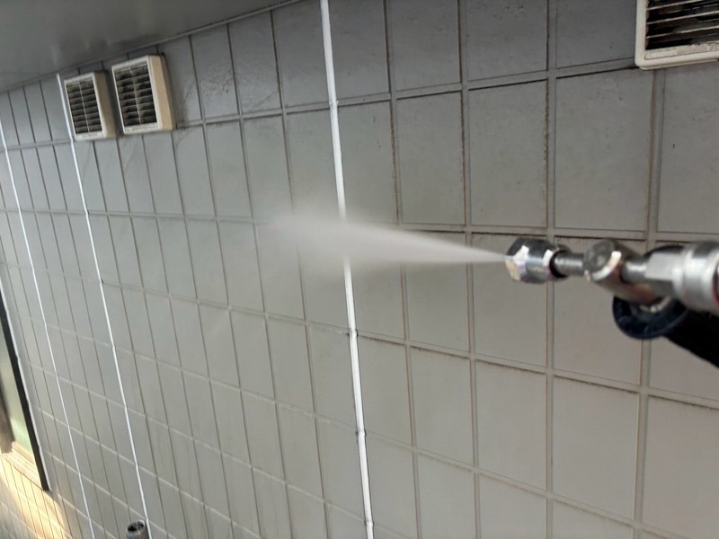 外壁はタイル調のデザインでしたが、紫外線や雨風の影響により、白さが失われ、くすんだ印象になっていました。