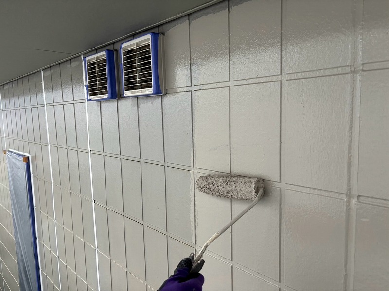 施工前は外壁の色あせや目地まわりの劣化が見受けられたため、高圧洗浄・シーリング補修を行ったうえで、遮熱性能と耐久性に優れた塗料を使用し、外壁・付帯部を塗装しています。