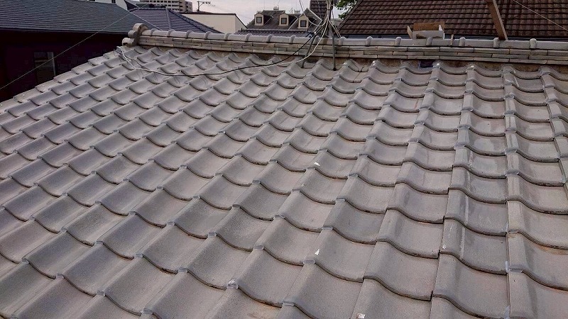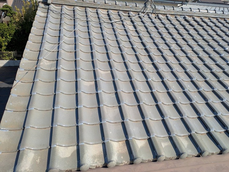 屋根全体を見ると、瓦自体は大きく破損している箇所は見られないものの、経年劣化により瓦のズレや浮きが生じている状態でした。