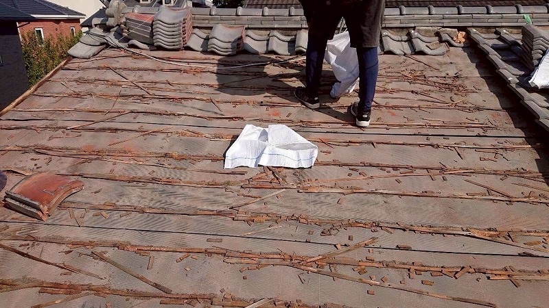 瓦を撤去した後、屋根下地の状態を詳しく確認しました。