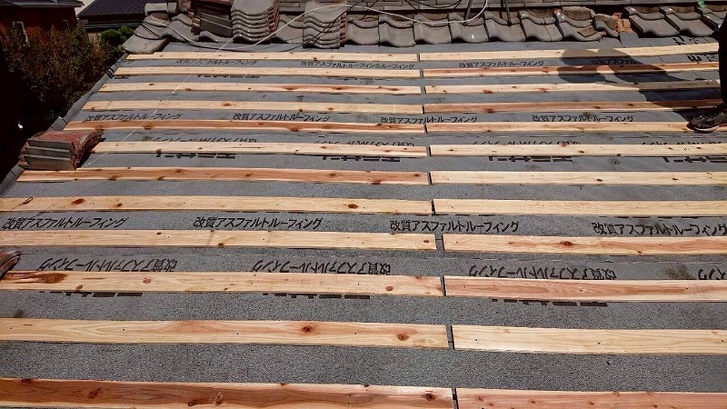 また、防水シートの上には瓦を固定するための桟木を設置し、瓦がズレにくく、風にも強い屋根構造となるよう施工しています。