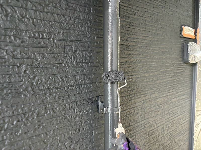 艶を抑えた仕上がりにすることで、外壁のツートンカラーとも自然に調和し、全体的に落ち着きのある引き締まった印象になりました。細部まで色ムラが出ないよう、ローラー・刷毛を使い分けながら丁寧に塗装を行っています。