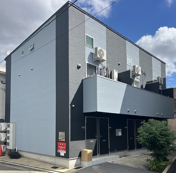 ブルーグレイ×チャコールで魅せる、アパート外壁塗装