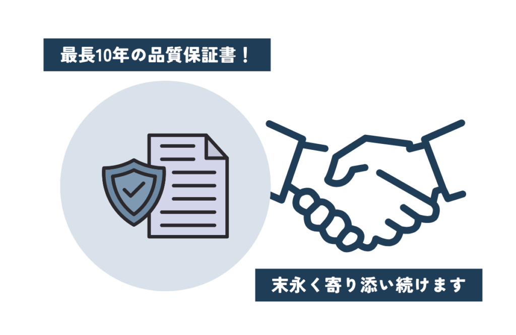 トラストホームでは、工事内容に応じた最長10年の品質保証書を発行しています。
