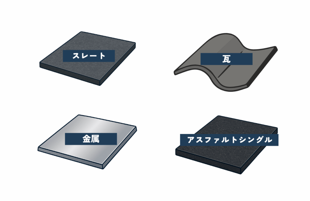 まず、ご自宅の屋根がどのような材料でできているかご存知ですか? 主に「スレート」「瓦」「金属」「アスファルトシングル」の4種類に大別され、それぞれ耐久性やメンテナンス方法が異なります。